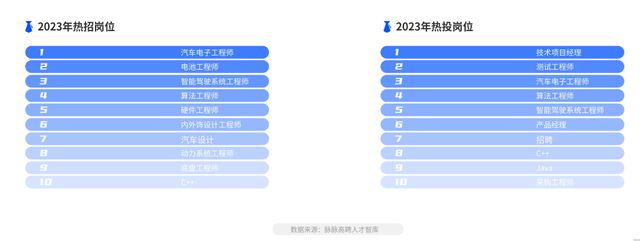 值得关注的是,新能源汽车行业存在着明显的供需失衡现象。2023年第一季度,汽?电??程师、算法?程师、智能驾驶系统?程师供需两旺。电池工程师、动?系统?程师、硬件?程师等?程师类岗位也在热招。然?,在热?招聘职位中,技术项?经理成为最受欢迎的岗位,位居热?招聘TOP1。