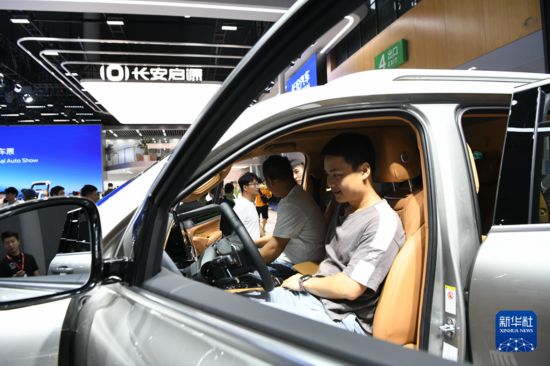 8月25日,在二十六届成都国际汽车展览会现场,参观者在试乘汽车。新华社记者唐文豪摄