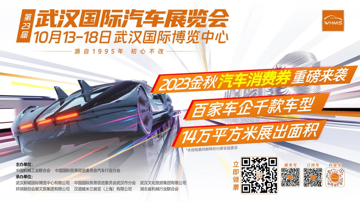近期武汉市及周边城市有购车需求的消费者,或可再等两周。10月13日—18日,2023年第23届武汉国际汽车展览会将在武汉国际博览中心盛大举行,届时将有千余款车型产出,车展购车还可享受大额补贴。