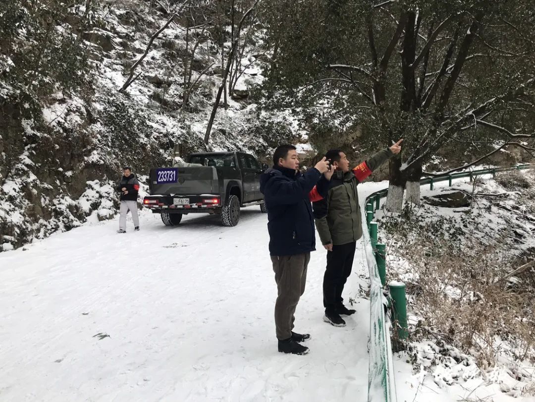 近段时间,因持续降雪,牛头山国家森林公园禁止游客机动车入内,同时,园区用来巡护的车辆也无法上路,这让巡山工作变得较为困难。