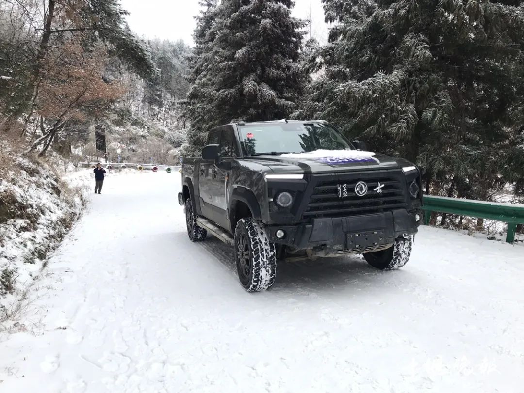 得知园区面临困境,23日,东风越野车有限公司猛士救援队安排两名专业驾驶员,驾驶一辆“东风猛士”车赶至牛头山,助力园区雪后巡山。