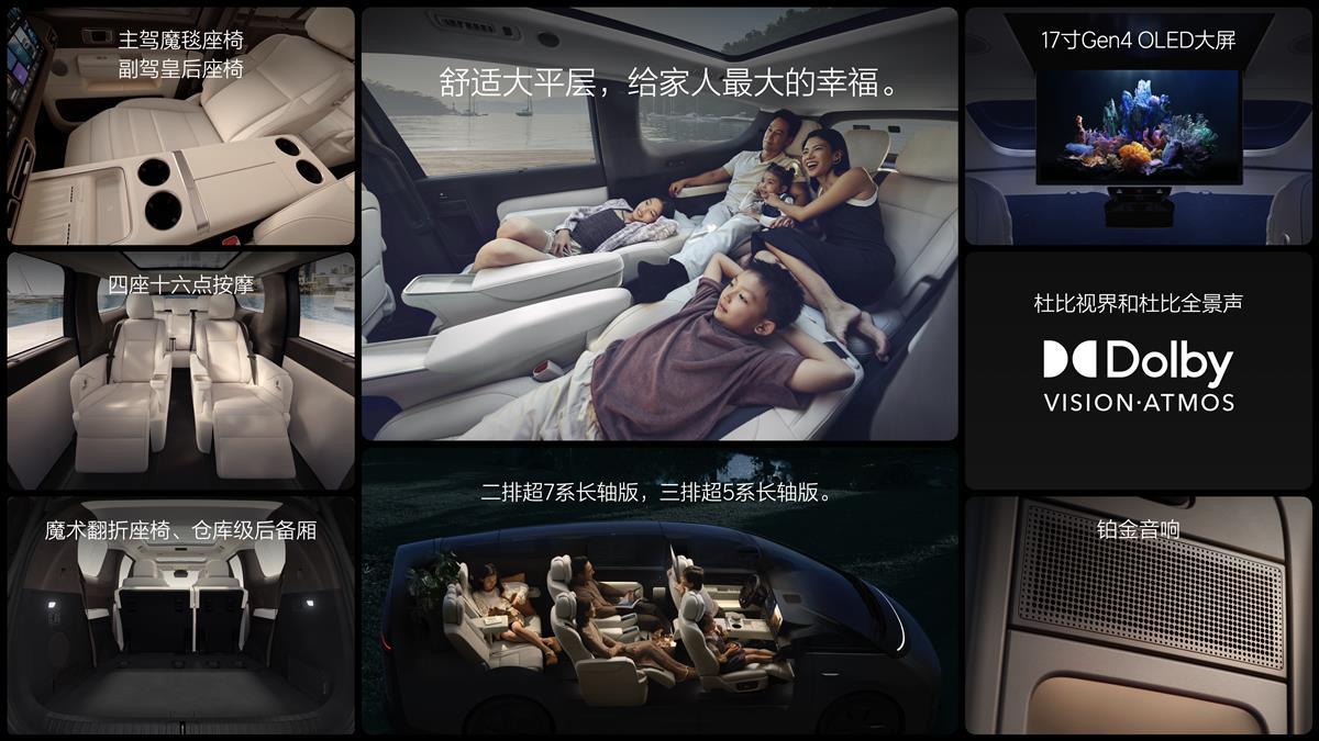 作为一款高端豪华MPV,理想MEGA拥有旗舰级车身尺寸,为大家庭创造极致舒适的移动空间,同时标配智能双电机四驱和魔毯空气悬架Max,采用更严苛的碰撞标准进行开发,兼具顶级驾乘舒适性和安全性。此外,理想智能驾驶AD Max和引入Mind GPT的智能空间,也让大家庭的旅途更添幸福。