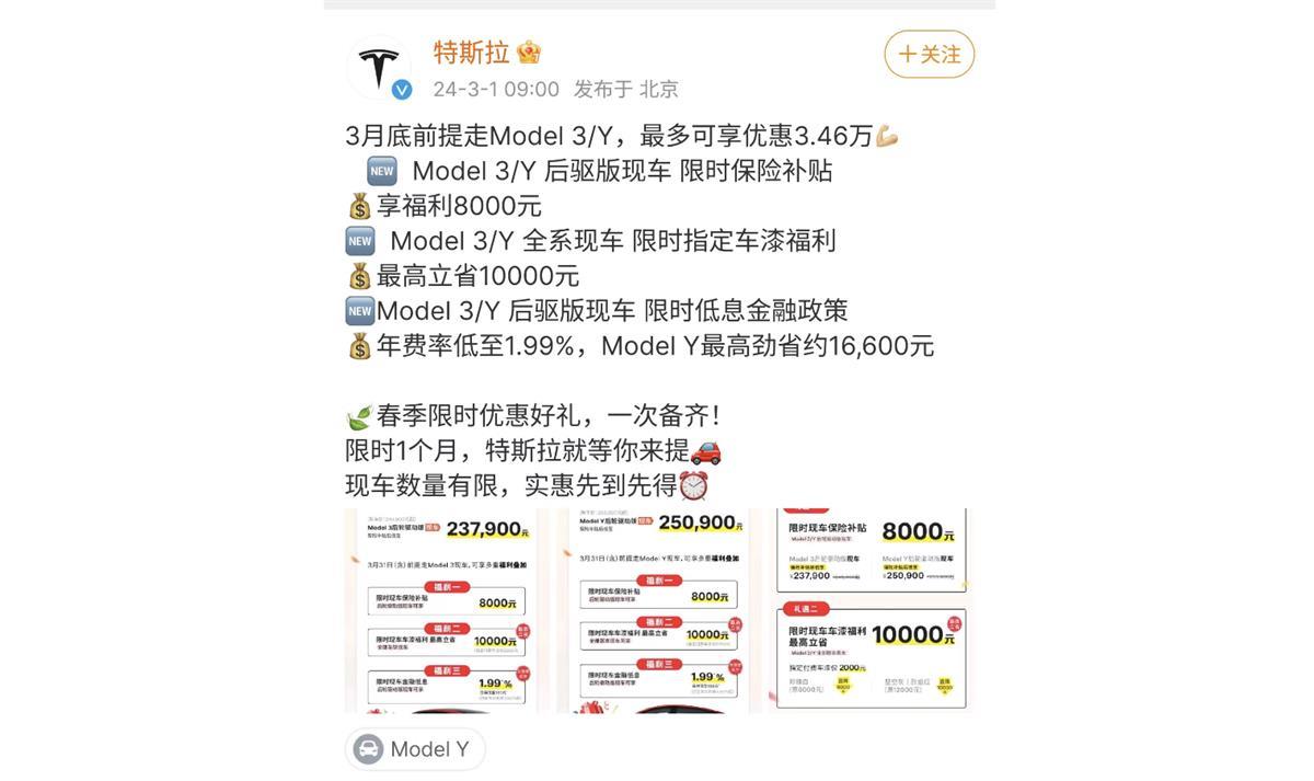 特斯拉降价优惠(图片来源:特斯拉官微)