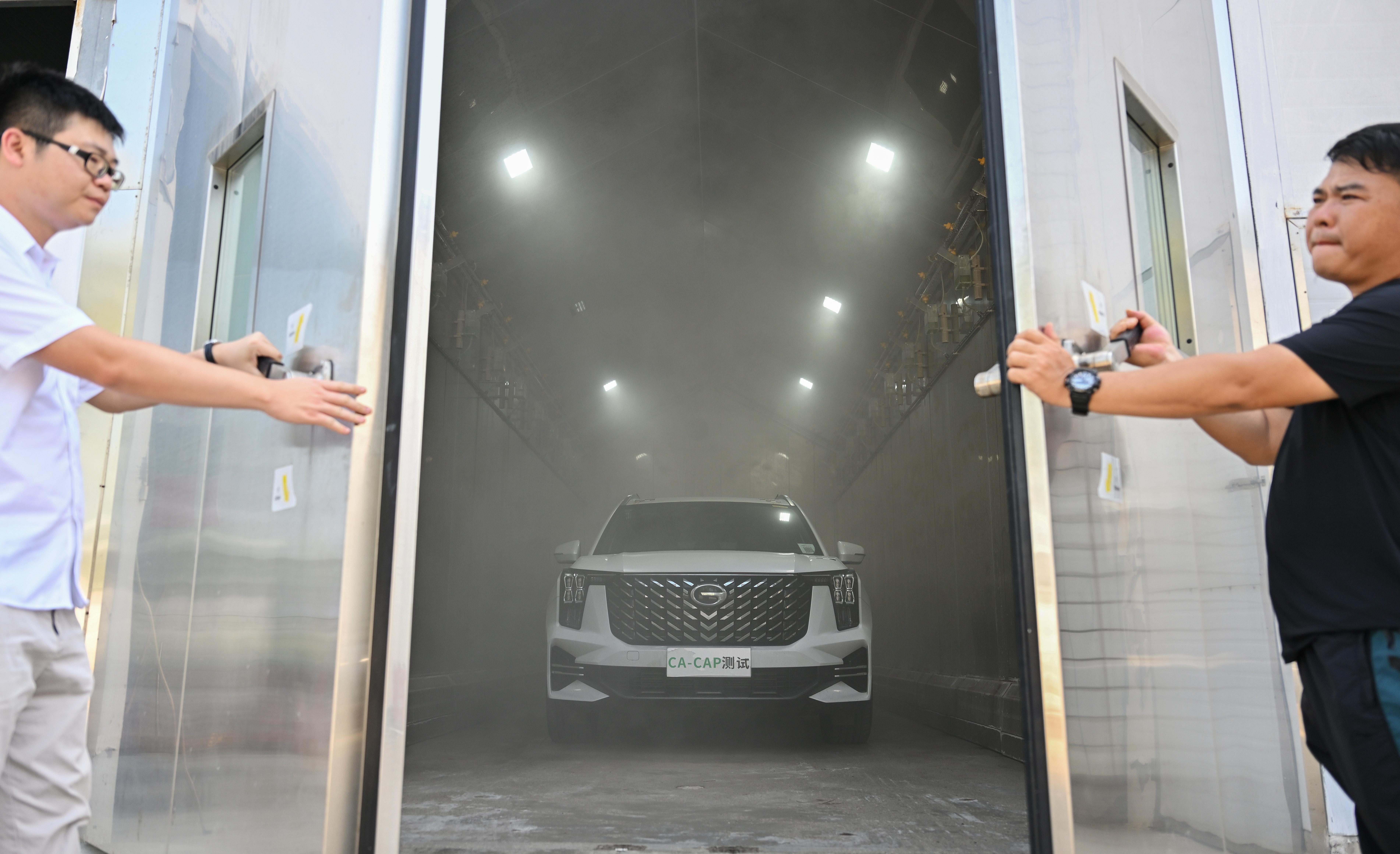 5月7日,工作人员对汽车进行盐雾腐蚀试验。 新华社记者 郭程 摄