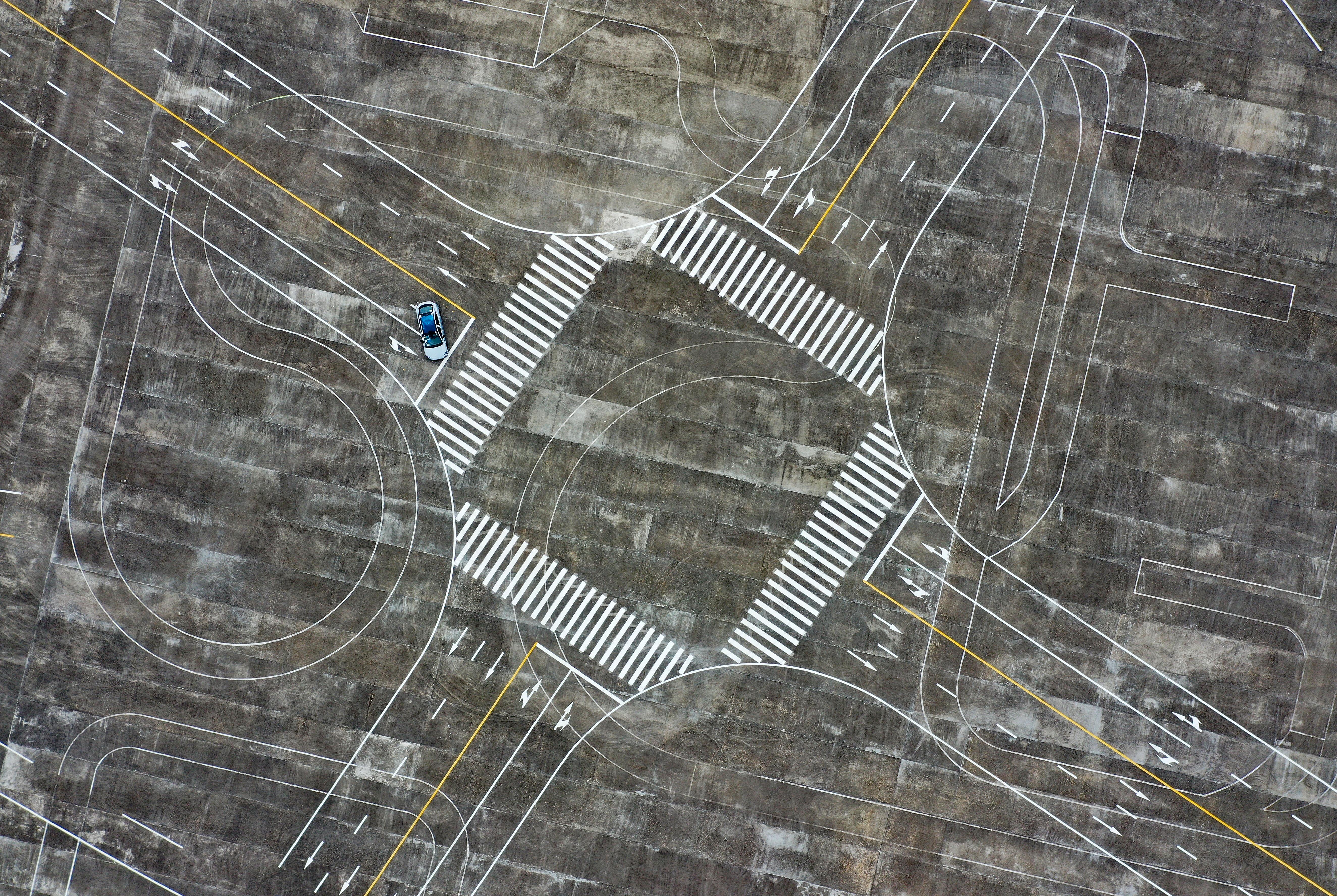 5月7日,车辆在进行动态测试(无人机照片)。 新华社记者 郭程 摄