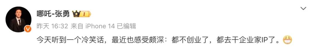 “今天听到一个冷笑话,最近也感触颇深:都不创业了,都去看企业家IP了。”