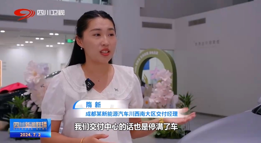 成都某新能源汽车川西南大区交付经理隋新:大概有个20%左右的这样的一个增幅,我们交付中心的话也是停满了车,然后这个只是今天上午的,下午还会再有一批车进来,今天大概有个20多台的一个交付量,也是本月的最高峰。
