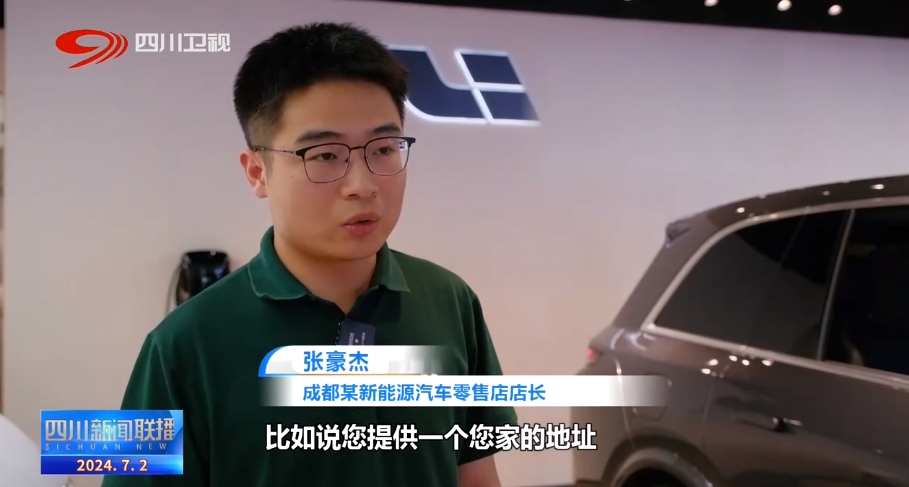 成都某新能源汽车零售店店长张豪杰:比如说您提供您(家住)的一个地址,我们可以安排专人过来给您对接,然后帮您上门评估一个您旧车的价格。