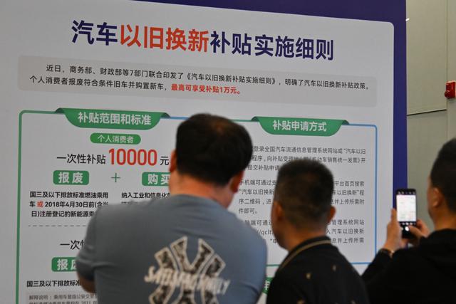 5月1日,市民在西安五一车展现场了解汽车以旧换新补贴实施细则。 新华社记者张博文5月1日摄 执行国家报废更新补贴的同时,多地还出台汽车置换补贴,即对二手车转出再购新车给予补贴,包括先购后补、发放汽车消费券等方式。