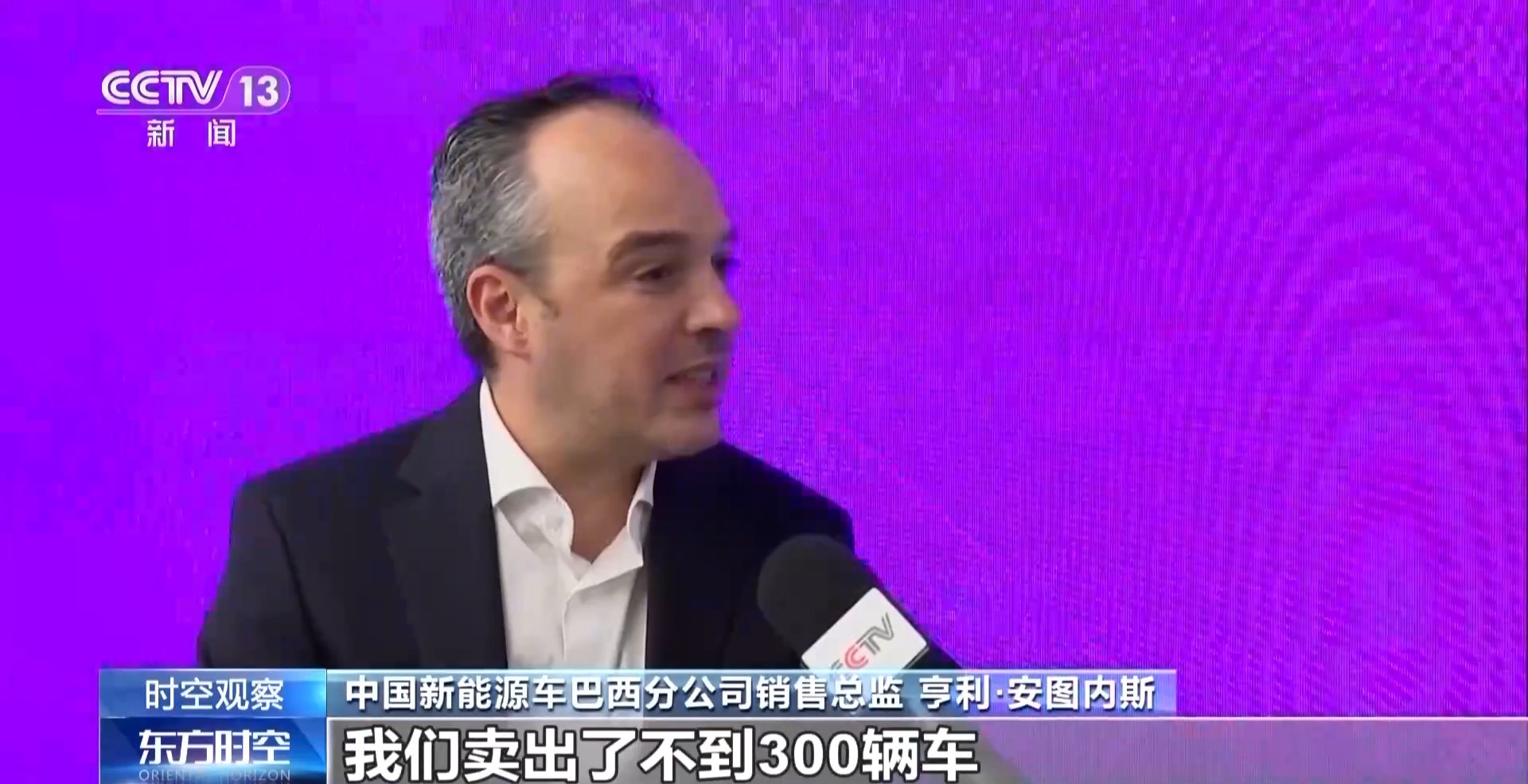中国新能源车巴西分公司销售总监 亨利·安图内斯:在2022年,我们卖出了不到300辆车。2023年我们卖出了近1.8万辆,今年我们(已经)有接近3万辆的销量。
