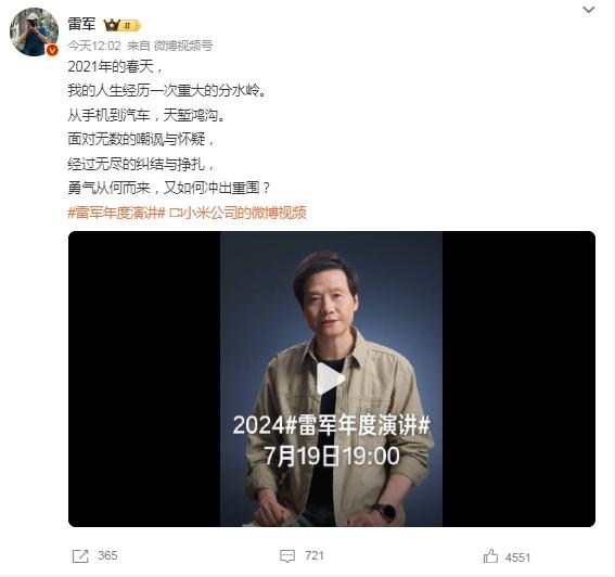 雷军表示,他将在第五次年度演讲中,与大家分享小米汽车究竟是如何狭路相逢、披荆斩棘、勇气从何而来,又将如何冲出重围。