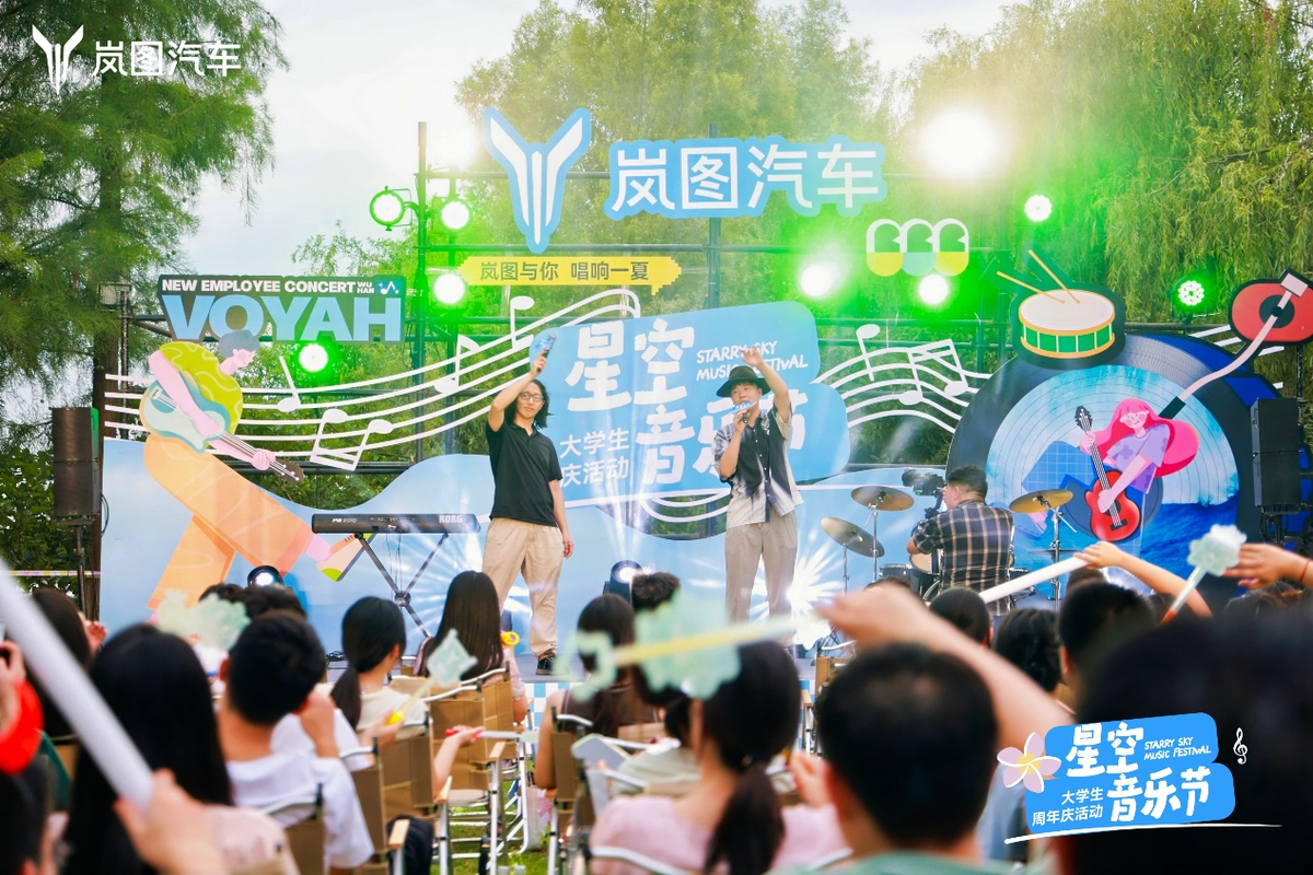 据了解,本次星空音乐节是岚图汽车为往届和应届生员工举办的大学生周年庆活动,于7月19日下午6点正式开始,持续到晚上8点半。极目新闻记者在现场看到,精心搭建的主舞台与周边天幕帐篷相映成趣,不仅营造出媲美大型音乐节的氛围,还融入了露营烧烤、趣味游戏、生日会等丰富多彩的环节,仪式感十足,让一百多位年轻员工沉浸其中。