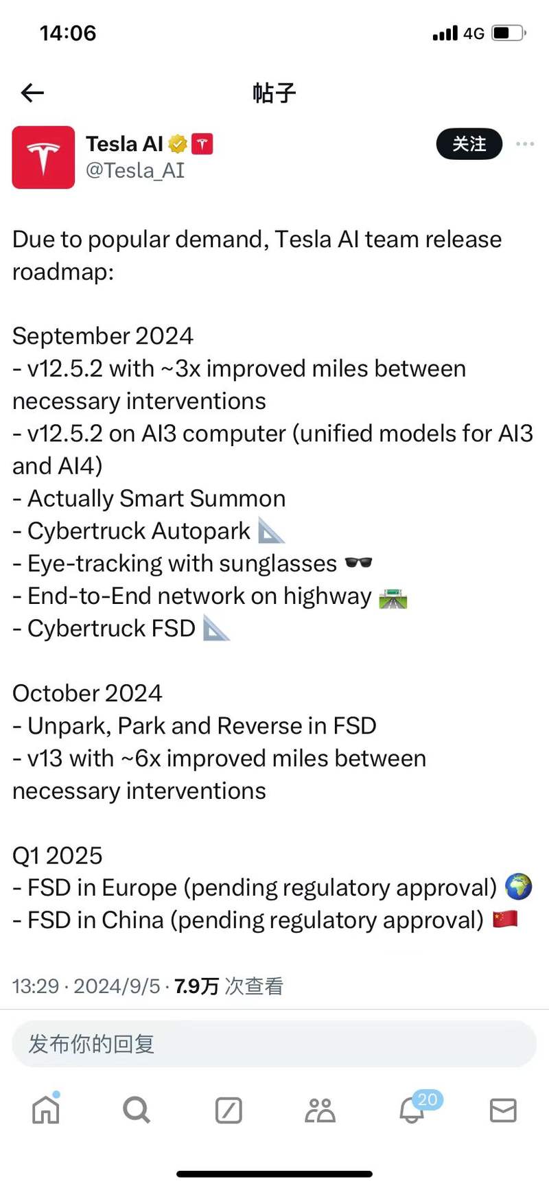 新京报贝壳财经讯(记者林子)9月5日,特斯拉AI账号发布AI领域相关发展路线图宣布,预计在2025年第一季度,特斯拉会在中国和欧洲推出全自动驾驶(FSD)系统的监管批准版本。
