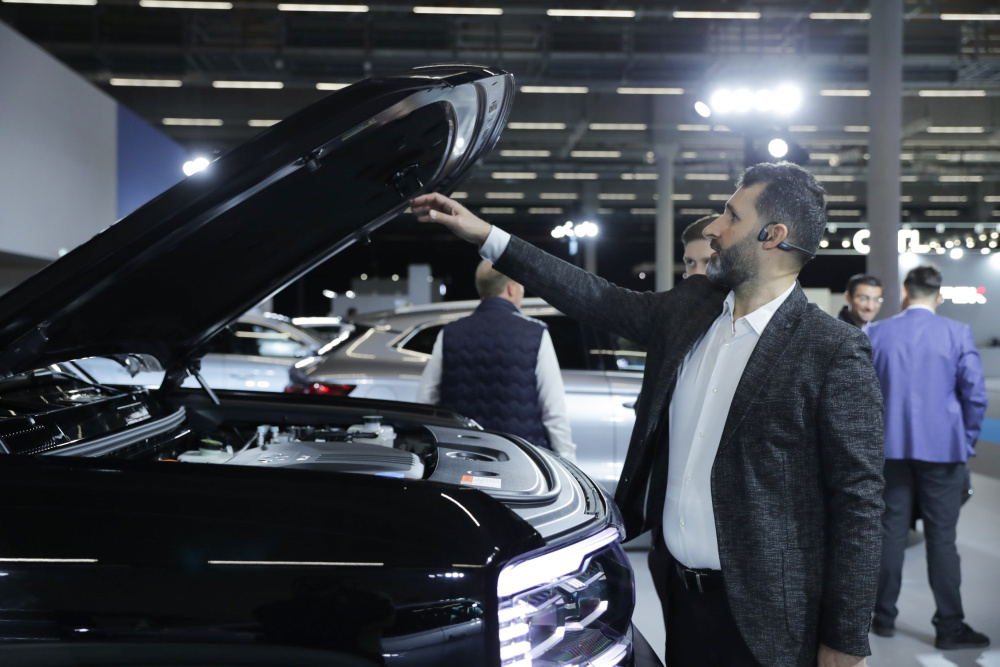 9月11日,人们在德国法兰克福国际汽车零配件及售后服务展览会上参观赛力斯展台。新华社记者 张帆 摄