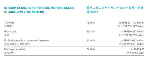从业绩来看,2023年,比亚迪实现营收6023.2亿元,同比增长42%;实现净利润300.4亿元,同比增长80.7%。今年上半年,比亚迪实现营业收入3011亿元,同比增长15.76%;实现净利润136.3亿元,同比增长24%。