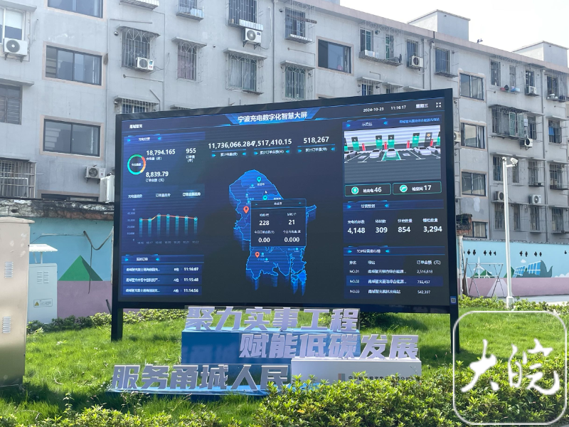 10月23日上午11点左右,记者来到这里,驿站入口处是一面“宁波充电数字化智慧大屏”,实时显示当日的充电量(度)、充电枪总数、累计订单金额等数据。“我家离这边近,经常过来充电,很方便。”吴先生说,他有时候会中午过来补充一会电,大概20分钟。