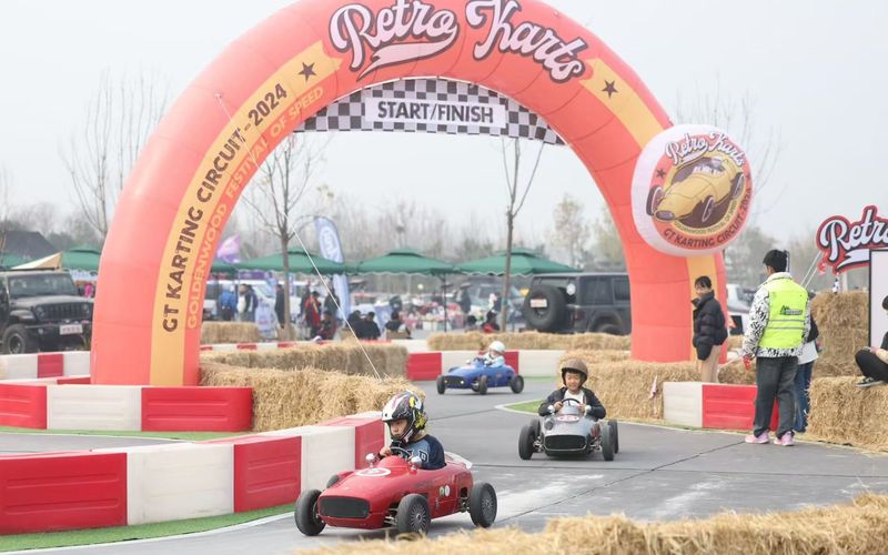 主会场区域包含钻杆和大嗓门、经典老爷车评选、漂移出租车、复古卡丁车、现场音乐美食节、汽车摩托车等产品展销等六项活动。其中,复古卡丁车项目不仅有专为2-5岁小朋友提供的多款儿童赛车,还有适合成人与儿童共同驾驶的赛车。