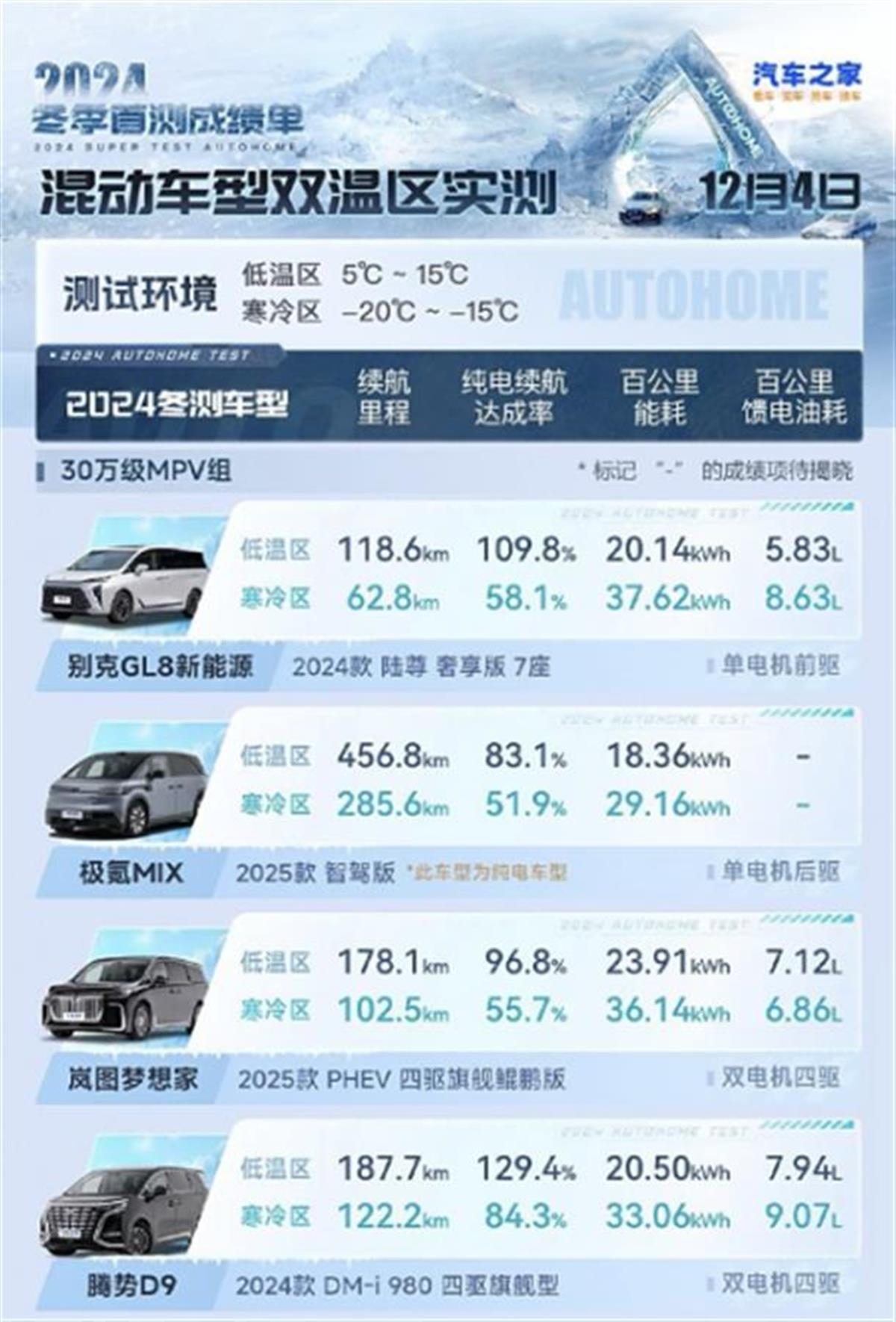 这场被业内称为“最严苛”的冬季测试,真实还原消费者在低温环境下的用车场景。测试结果显示,腾势D9在低温区(5℃~15℃)纯电续航达成率高达129.4%,在寒冷区(-20℃~-15℃)纯电续航达成率达84.3%,大幅领先同级别车型,而腾势Z9GT同样表现出色,在低温区纯电续航达成率108.0%,在寒冷区纯电续航达成率84.1%。两款车型几乎都以“反向虚标”的表现,彻底颠覆了行业对冬季续航里程的传统认知,体现了中国新能源科技的新高度。