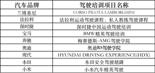 汽车品牌驾驶培训项目 数据来源:各品牌官网及相关宣传材料,记者不完全统计