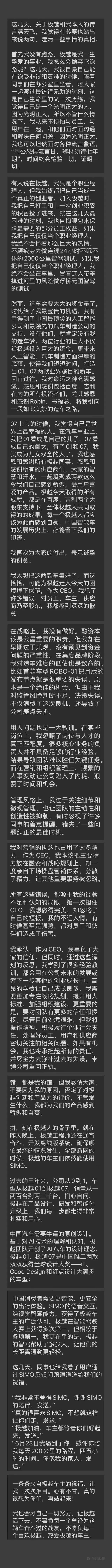 极越CEO夏一平发长文道歉(图片来源:新浪科技)