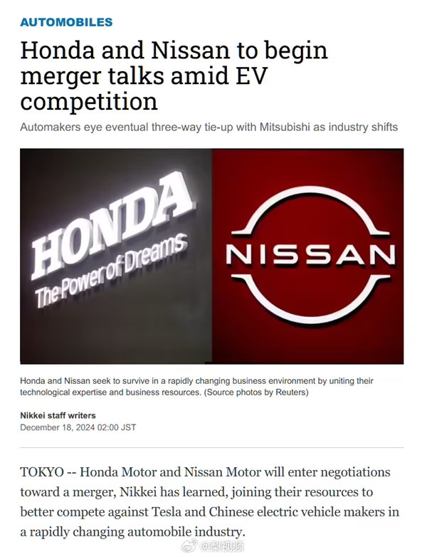 有意思的是,本田和日产在回应中既未证实也未否认该报道,“报道内容并非本公司发布。正如今年3月宣布的那样,本田和日产正在探索未来合作的各种可能性,充分利用彼此的优势。我们将在适当的时候将任何更新通知我们的利益相关者。”