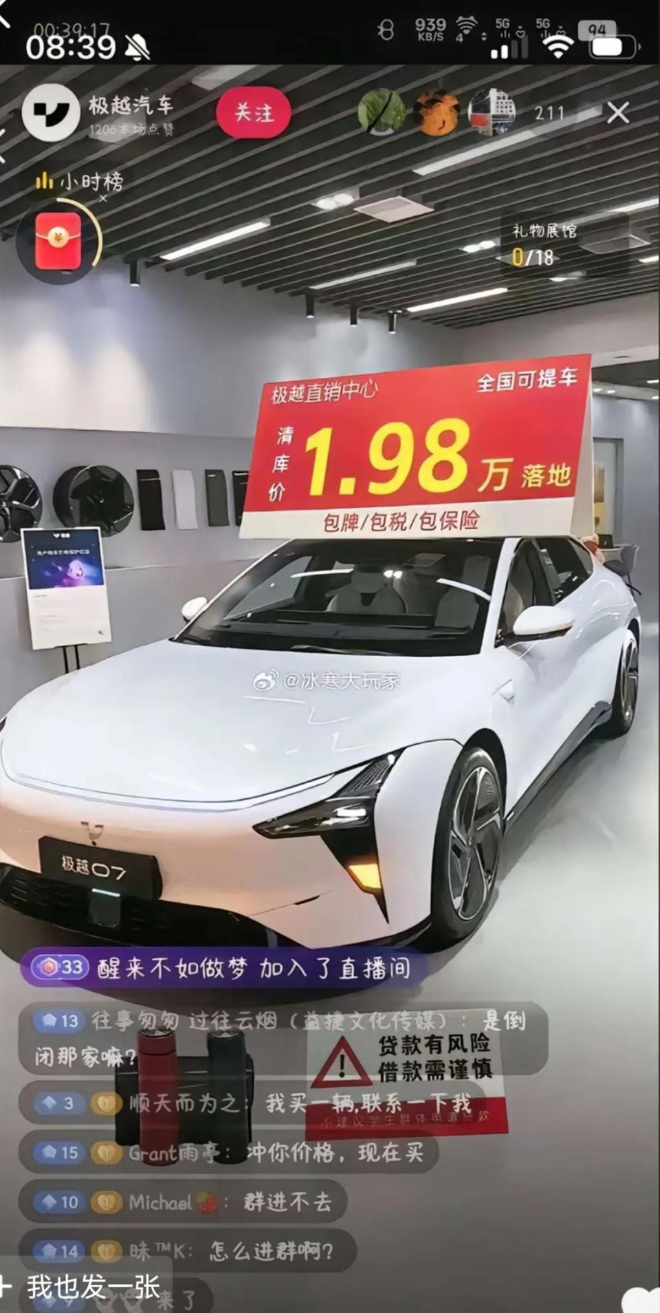 某直播间极越车标价1.98万元