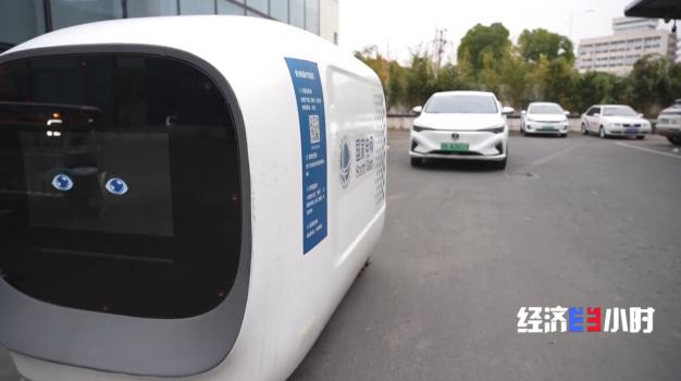 在国家电网无锡电动汽车体验中心内,等待充电的新能源车主只要简单扫描二维码,机器人就会自动驶向新能源汽车进行充电。