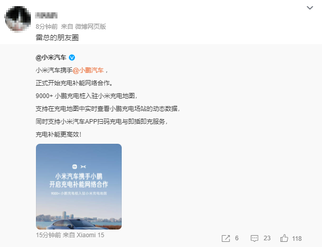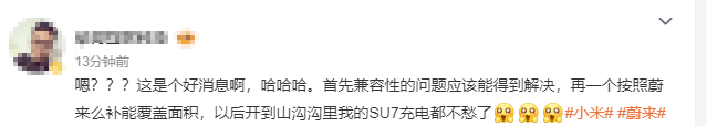 对此,网友纷纷表示雷总的朋友圈太强大,未来新能源车主充电更方便了。
