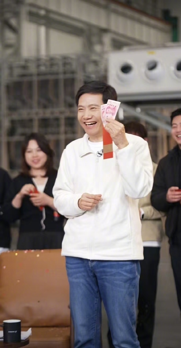 而在这个欢乐的时刻,雷军本人也收到了一份意外的惊喜——一个神秘的红包。当他满怀好奇地打开时,发现里面竟然是两张崭新的百元大钞。