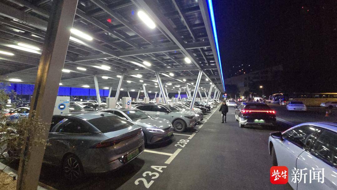 记者注意到,这里的家用电动车和营运车辆几乎各占一半。无论是特斯拉、小米SU7等热门车型,还是出租车和网约车,都在排队充电。一位网约车司机告诉记者:“我每天晚上都会到这里充电,顺便在车里睡觉、等订单。”在他看来,这种方式不仅可以节省电费,还能合理利用空闲时间,“白天忙得很,晚上省点钱也算是给自己补贴一点。”