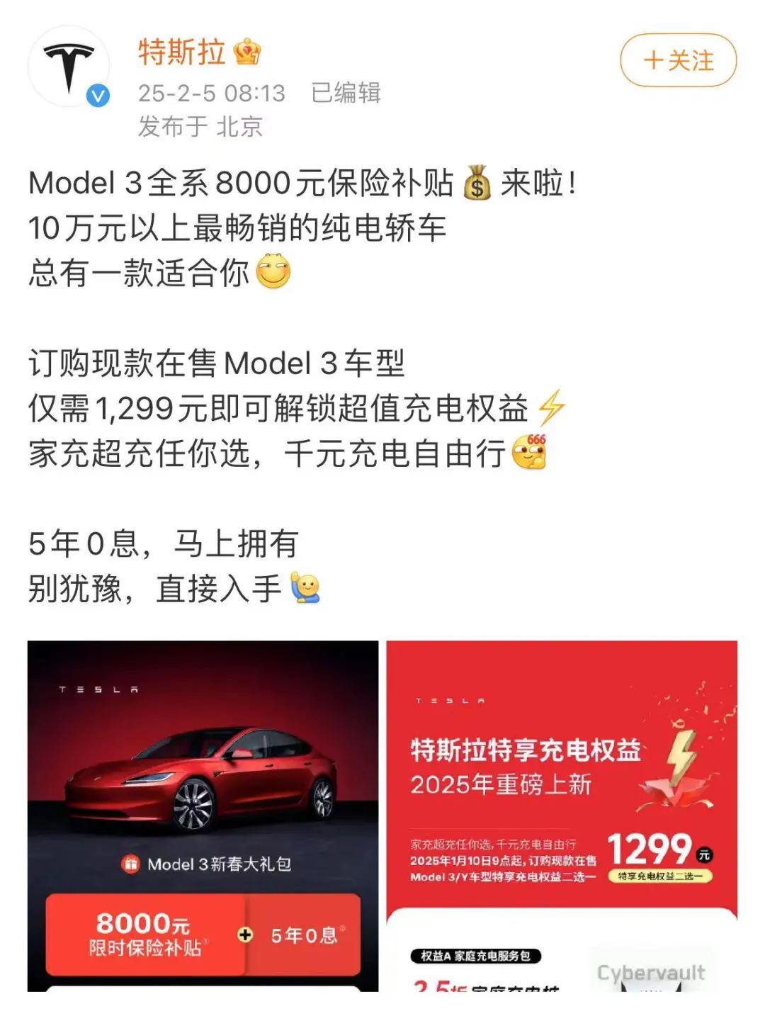 今天(2月5日),特斯拉推出“史上最大优惠套餐”,在本次优惠活动中,焕新版Model 3可享受8000元限时保险补贴以及5年0息贷款政策,这也是特斯拉首次同时推出5年免息和保险补贴政策。在保险补贴之后,焕新版Model 3后轮驱动版起售价为22.75万元。