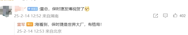对此,雷军表示:“保时捷是世界大厂,有格局!”