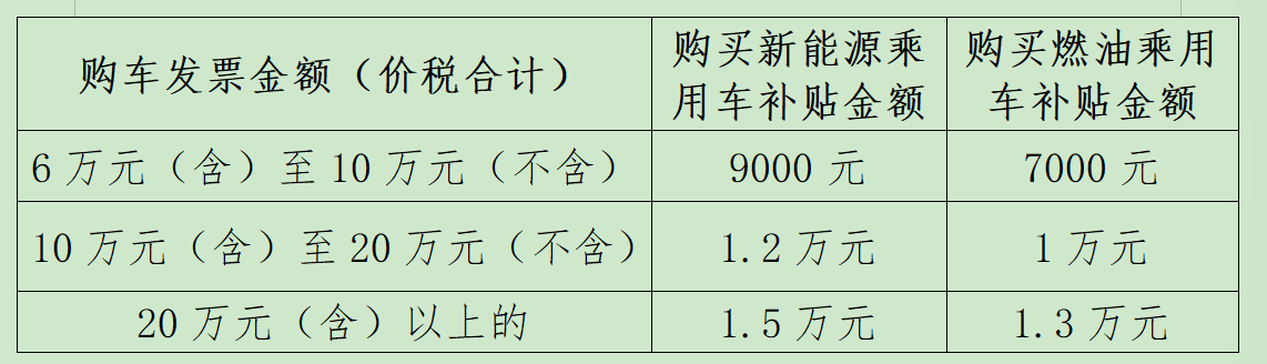 (二)汽车置换更新补贴标准。自2025年1月1日至2025年12月31日,个人消费者在湖北省内转让登记在本人名下的乘用车并购买乘用车新车,转让车辆、新购车辆分别完成转让登记、注册登记,按新购乘用车含税销售价格分档给予一次性补贴。