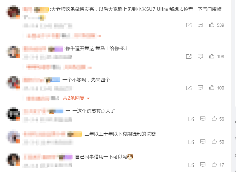 大老师这条微博发完,以后大家路上见到小米SU7 Ultra 都想去检查一下气门嘴帽了………