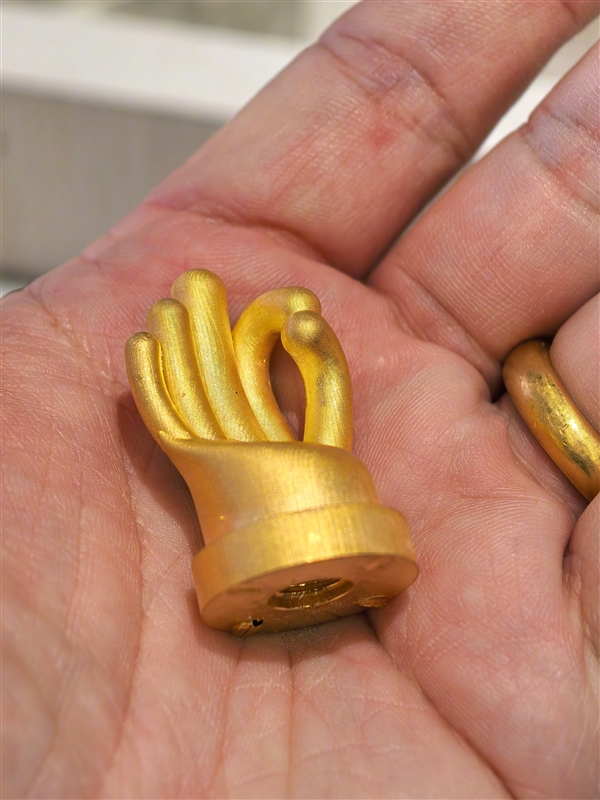 据了解,韩路打造的黄金气门嘴,原型是小米官方推出的“Are you OK手型设计”气门嘴帽,采用PVC+黄铜材质打造,官方售价29.9元/对。