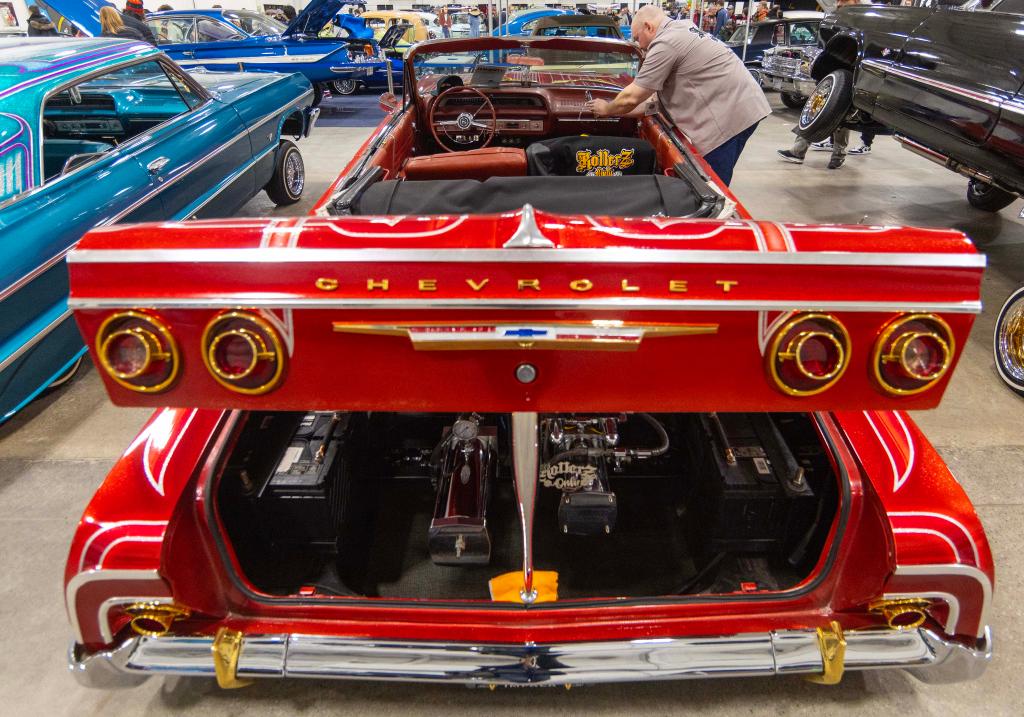 3月7日,一名男子在加拿大大多伦多地区米西索加举行的改装车展上拍摄改装车。