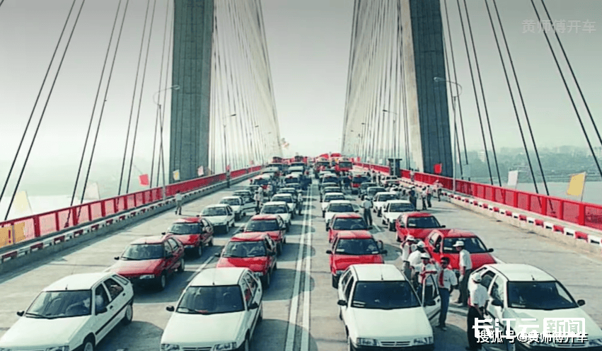 1995年,武汉长江二桥通车,富康组成的巡游方队。图源:网络