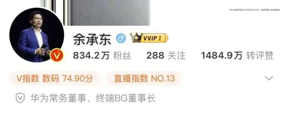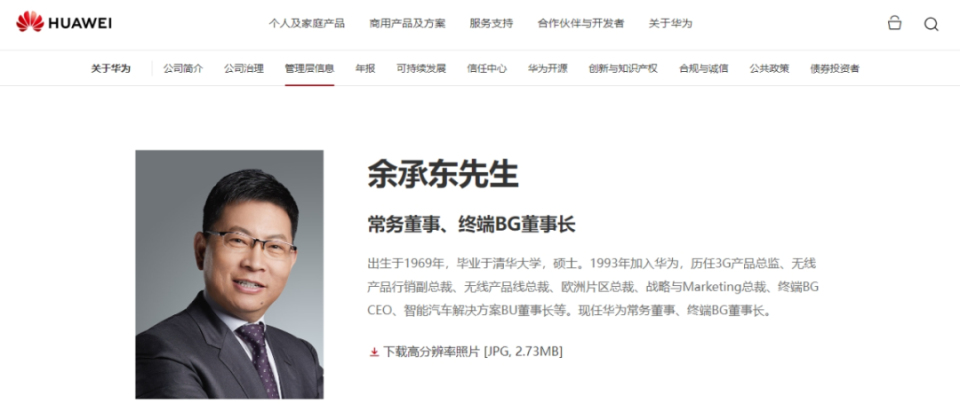 记者查询获悉,目前,华为官网对余承东的介绍信息、余承东微博和抖音的认证信息已变更为“华为常务董事、终端BG董事长”,原先的“智能汽车解决方案BU董事长”身份认证已取消。