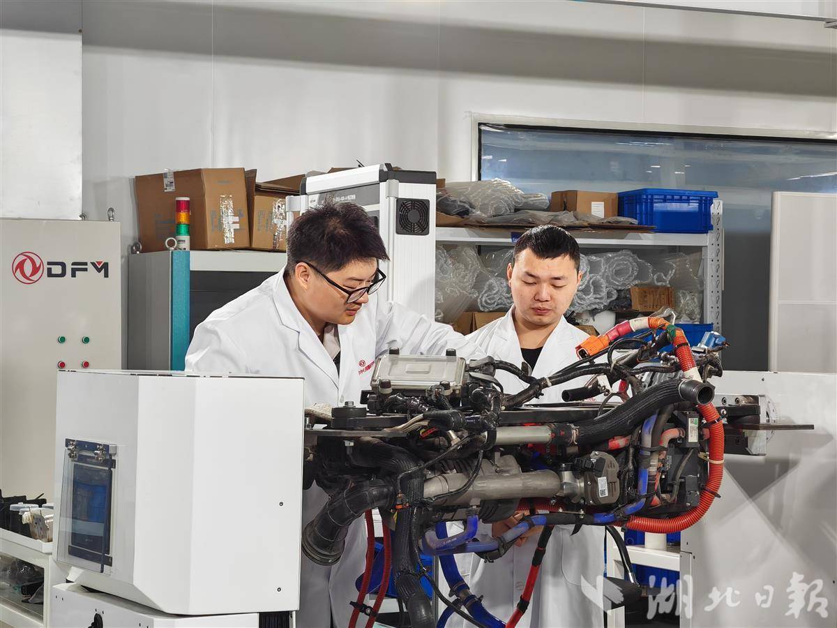 当天,在东风新能源汽车产业园内,技术员正埋头组装氢燃料电池的零部件。“这是国内首条氢燃料电池电堆中试线,2019年正式投用。”张剑说,在这里完成安装和工艺验证后,最终搭载到整车上。