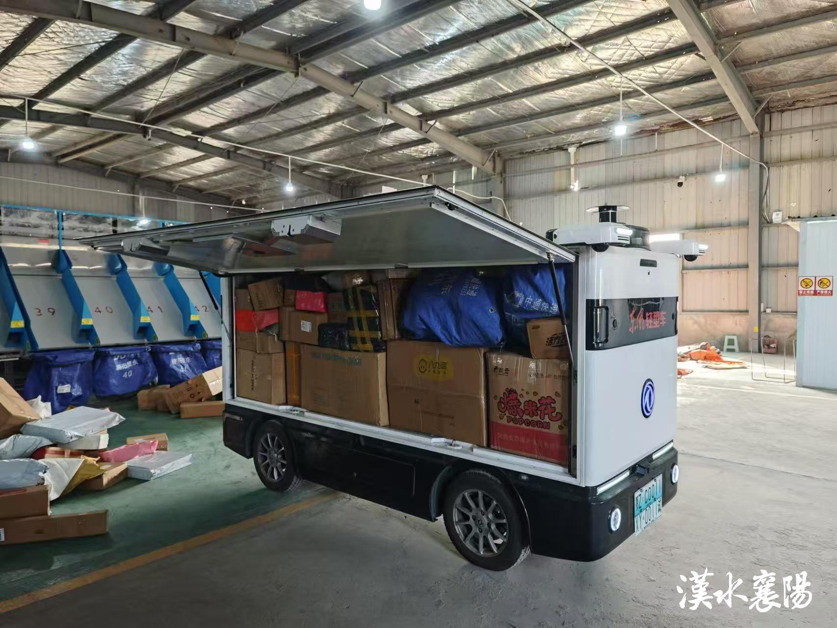 4月7日,襄阳市襄城区尹集乡,一辆装载500多件包裹的无人配送车出发,按既定线路直达目的地。