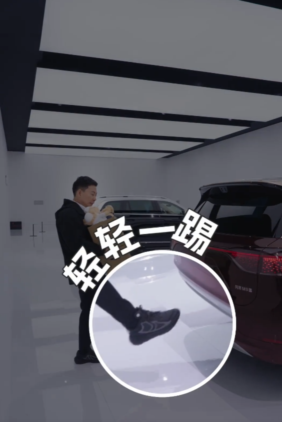除了隔空开车门,余承东还演示了脚踢感应开启后备箱的功能,他表示用户在携带大量物品、双手不便的情况下,只需用脚在后备箱下隔空轻轻一踢,就能轻松开启后备箱。