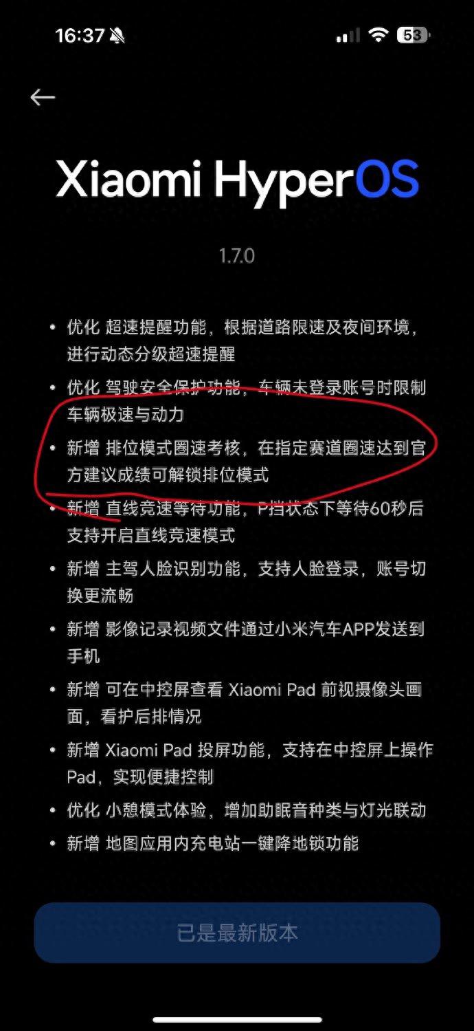 根据更新日志,小米SU7 Ultra新增了排位模式圈速考核功能。车主需要在指定赛道的圈速达到官方建议成绩后,才能解锁排位模式,激活车辆的最大马力。这一更新旨在确保车主具备一定的驾驶技术和赛道经验,从而提升驾驶安全性和车辆性能的合理利用。