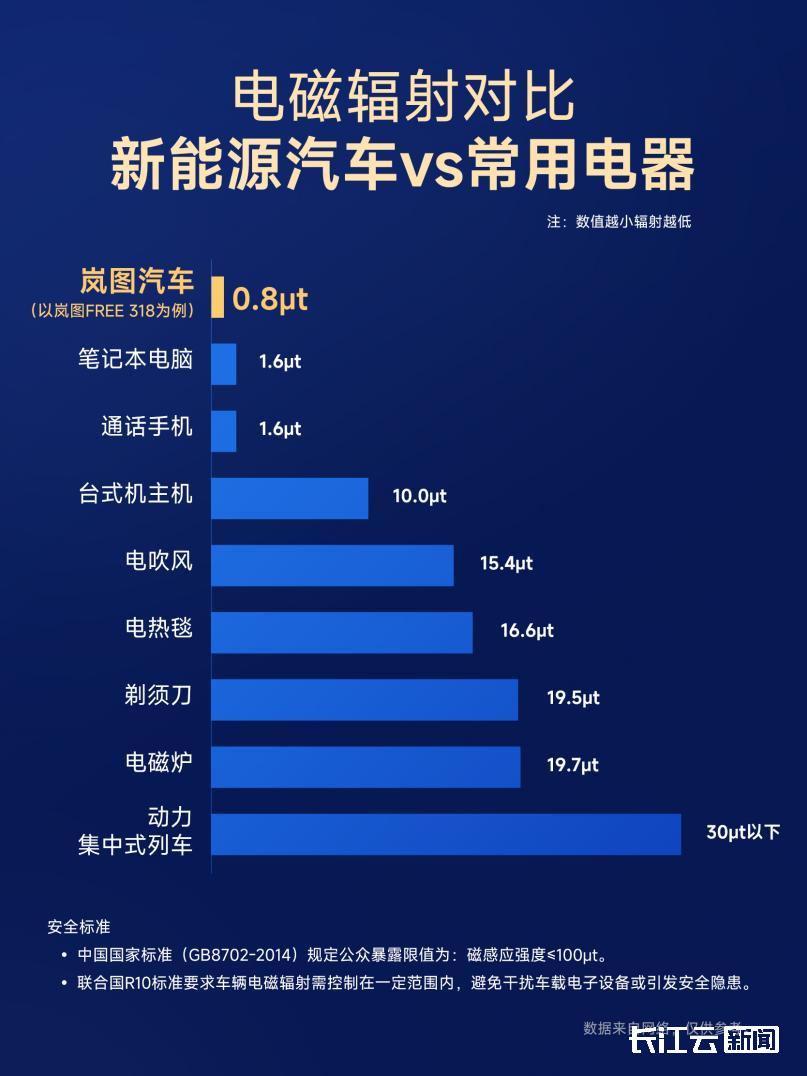 对质量近乎苛刻的把控,是岚图汽车赢得海外市场的又一秘诀。上月初,岚图汽车因一项数据“电磁辐射值”,在海外市场再度“出圈”。经GB 8702和GBT37130对低频电磁场测试,岚图汽车电磁辐射值仅为0.8μt(微特斯拉),比日常使用的手机和笔记本电脑还要低。