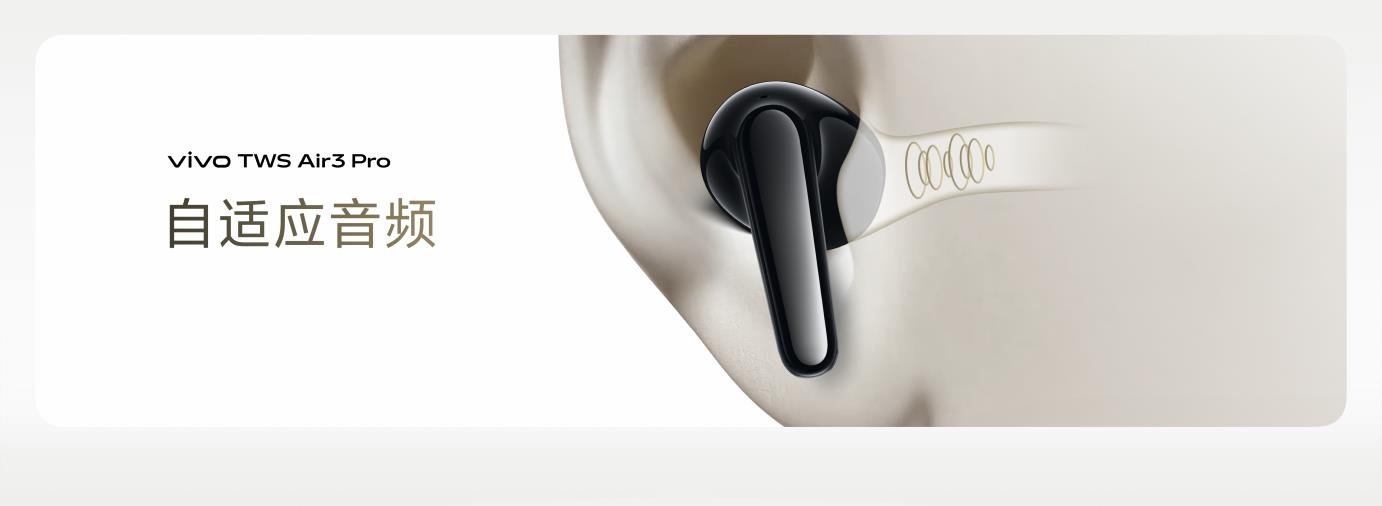 vivo 金耳朵声学团队为 vivo TWS Air3 Pro 带来深度调校,与高校合作研究,实现全新升级的 3D 全景空间音频,精准还原剧场、音乐厅、录音棚和演唱会等空间声场,更有配合 DeepX 3.0 立体声效的定制听书声效与三种音效风格,满足多元听觉需求;创新搭载自适应音频技术实时分析耳道结构与佩戴状态,智能补偿频响曲线,让每位用户都能获得量身定制的沉浸听感。