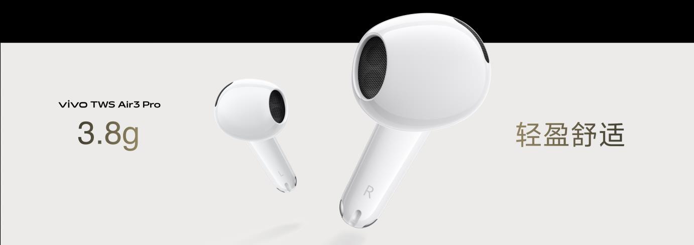 vivo TWS Air3 Pro 采用半入耳精妙结构配合通气孔设计,单耳机重量仅3.8g,长久佩戴舒适无感;耳机历经五大可靠性测试标准与 23 项严苛测试,更是支持 IP54,无惧运动汗水与雨天通勤,品质可靠;还有 vivo 全国 970 家客户服务中心提供全方位售后保障,让用户畅享无忧体验。