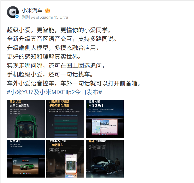 来源:@雷军、@小米汽车等