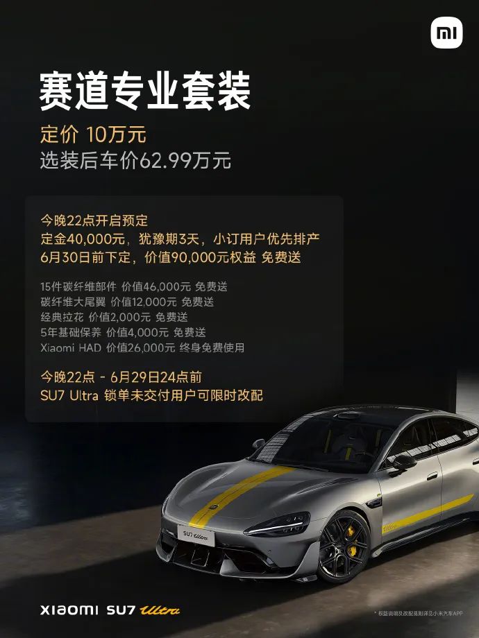 赛道专业套装,定价10万元,选装后车价62.99万元;