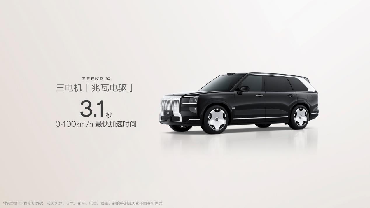作为一款全尺寸豪华SUV,极氪9X拥有多项全球首发或全球第一的硬核科技。基于全球首款全栈900V高压电混架构,极氪9X在全球混动SUV中纯电续航里程最长、充电最快和加速最快,且是全球极速最高的全尺寸混动SUV。同时,极氪9X在全球SUV中首搭闭式双腔空气悬架和双阀CCD电磁减振系统,中国品牌首搭48伏主动稳定杆全球首发5激光雷达和双NVIDIA DRIVE Thor-U芯片,重新定义了豪华混动SUV价值标杆。