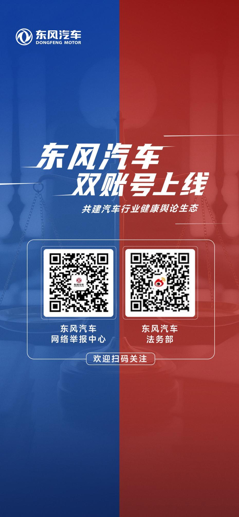 为深入贯彻落实中央网信办“清朗”系列专项行动部署,积极响应行业自律要求,近日,东风汽车集团有限公司(以下简称东风汽车)正式开通网络举报中心微信公众号、东风汽车法务部官方微博号,搭建专业化网络信息治理平台,坚决抵制恶意造谣、抹黑诋毁等不良信息,以法律手段和实际行动捍卫品牌形象、彰显央企担当,助力中国汽车行业高质量发展。