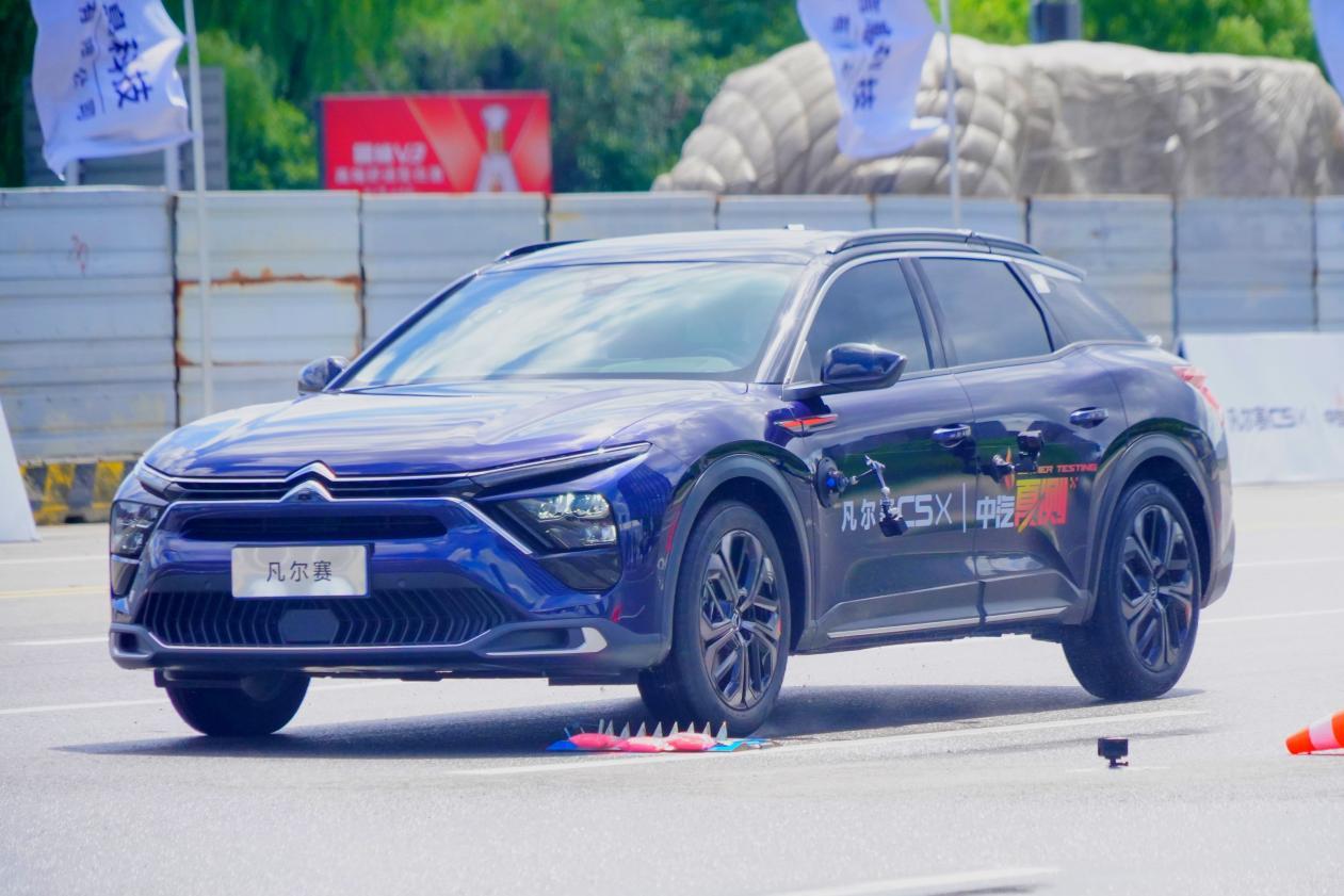 在测试车的选择上,中汽中心使用一年车龄的凡尔赛C5 X试驾车,并采用“一车到底”测试方式,所有轮胎更换均在测试现场即时完成,确保测试条件的统一性和可靠性。最终,凭借博世ESP 9.3电子稳定系统、雪铁龙MCS大师级底盘调校、PHC自适应液压稳定技术三大核心安全技术,凡尔赛C5 X成功通过了全部极端工况测试,充分展现了卓越的操控安全。